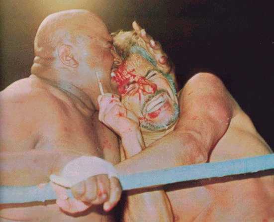 November 27, 1975 (Thursday) – Atlanta, GA – Omni Coliseum (Paul Jones – Promoter / Georgia Championship Wrestling) > Luke Graham and Dean Ho went to a draw > Tony Charles over Ron Garvin > Jerry Brisco & Bob Backlund over Dick Slater & Bob Orton, Jr. > Moondog Mayne over Chief Bold Eagle > Jay Strongbow over Brute Bernard > Ernie Ladd & Bobo Brazil over Harley Race & Ox Baker > Georgia Heavyweight Title versus Mask Match: the Spoiler over Mr. Wrestling #2* to win the title > Cage Match: Abdullah the Butcher over the Sheik / Notes: There was no referee for the Abdullah-Sheik match. Eddie Creatchman managed the Sheik. Gary Hart managed the Spoiler and Bernard.